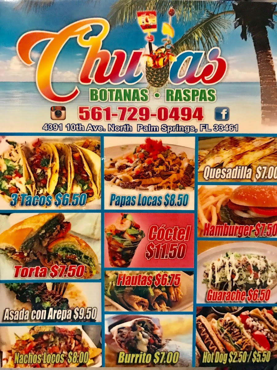 Introducing the menu at Chulas, a vibrant eatery located in the heart of Lake Worth Beach, offering an enticing fusion of traditional Mexican flavors and modern twists. Renowned for their all-day chilaquiles, patrons can savor options like Chilaquiles De Pollo or De Asada, featuring crispy tortilla chips smothered in spicy salsa and crowned with an optional fried egg for a truly delightful experience.